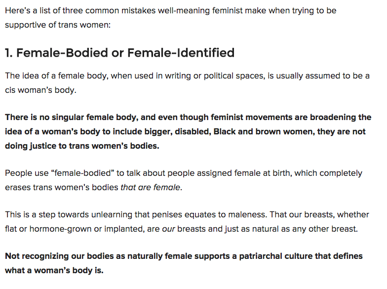 Female-bodied ← Previous Next → http://everydayfeminism.com/2015/05/feminist-phrases-marginalize-trans-women/